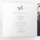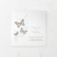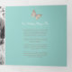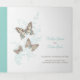Programme de renouvellement de six pages ou de cérémonie du mariage en format carré. Modifiez ce programme de mariage avec vos propres noms, dates, introduction, libellé de cérémonie, accompagnateurs de mariage, une photo de votre premier événement ou mariage restreint, ou une photo de votre fiançailles, et ajoutez vos propres mots de remerciement au dos. Des papillons turquoises, bruns et crème ainsi que d'autres produits de mariage couleur et des options de couleur sont disponibles. Art original et design de Sarah Trett pour www.mylittleedenweddings.com sur Zazzle.