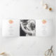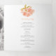 Tripler simple pêche botanique fuzz couleur fleurs aquarelle art sur un programme de mariage arrière - plan blanc. Une partie de l'ensemble de papeterie mariage aquarelle art florissant. Jolie pêche rose orange, vert olive et gris. Éditez ce programme de mariage avec votre nom, dates, libellé de la cérémonie, accompagnateurs de mariage, histoire d'amour et trois photos et merci. Élégant programme de cérémonie de mariage remplacez simplement l'exemple de texte par vos propres informations de mariage. Traitement de couleur peinture à l'aquarelle à la main et design par Sarah Trett pour www.mylittleedenweddings.com sur Zazzle.