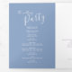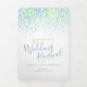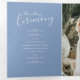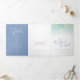 Un programme de renouvellement mariage de six pages d'art moderne vert bleu. Modifiez ce programme de mariage avec vos propres noms, dates, introduction, libellé de cérémonie, accompagnateurs de mariage, photo de votre premier événement ou mariage restreint, et vos remerciements. Art et design originaux par www.mylittleedenweddings.com