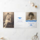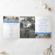 Programme funéraire ordre de service gatefold floral forget-me-not flowers programme funéraire d'art en blanc, bleu, avec des touches de jaune et vert sur le papier blanc. Il vous suffit de remplacer l'exemple de texte et les supports photo par vos propres photos et informations spéciales. Dessin original encré et aquarelle d'illustration et design par Sarah Trett pour www.mylittleeden.com (les photos ne sont que des images d'espace réservé à remplacer par les vôtres).