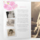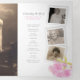 Ordre de service funéraire tri-plié six pages programme d'aquarelle de fleurs de cerisier de printemps. Embelli de fleurs roses et de feuilles vert clair printanier sur un arrière - plan blanc. Remplacez simplement l'exemple de texte et les supports photo encadrés blancs de style instantané par vos propres photos spéciales et détails d'information. Peinture et design botanique d'origine par Sarah Trett pour www.mylittleeden.com (les photos ne sont que des images d'espace réservé à remplacer par les vôtres).