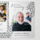 Programme funéraire blanc pliable en trois personnalisé avec plusieurs photos de votre proche et de la vie qu'il a menée. Le programme commémoratif pliable en trois a un thème musical avec des illustrations dessinées à la main de notes et un motif dessiné à la main de notes, parfait pour les musiciens, les compositeurs, les professeurs de musique et autres. Ajoutez une nécrologie, des remerciements, un poème ou une prière.