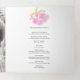 L'aquarelle à fleurs de cerisier botanique à trois côtés sur un programme de mariage d'arrière - plans blancs. Une partie de l'ensemble de papeterie mariage aquarelle art florissant. Joli rose, vert et gris. Modifiez ce programme de mariage avec votre nom, dates, libellé de la cérémonie, accompagnateurs de mariage, et merci. Élégant programme de cérémonie de mariage remplacez simplement l'exemple de texte par vos propres informations de mariage. Peinture et design par Sarah Trett. www.sarahtrett.com pour www.mylittleedenweddings.com