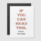 Un texte drôle qui est sûr de mettre un sourire sur chacun visage. Le texte indique : Si vous pouvez lire ceci, vous êtes trop étroits.