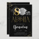 Tropical 80th Birthday Gold Invitation Card with Photo fait partie de la collection Mariage. Ce produit est doté de scintilles de parties scintillant dorée personnalisables en section photo. Fait avec des polices décoratives. Explorez d'autres produits correspondants dans notre magasin.