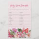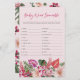 Tropical Baby Word Scramble. Ajoutez du plaisir et de l'excitation à votre baby shower avec notre jeu de bambou mot. Ce jeu présente d'élégantes touches modernes et des couleurs vibrantes, avec de superbes aquarelles avec des feuilles luxuriants de palmier vert et de monstère, des orchidées magenta et fuchsia vives, et des fleurs d'hibiscus roses et moelleuses. Gardez vos invités divertis et engagés avec ce jeu magnifiquement conçu qui complète parfaitement votre thème tropical. (Clé - 1. couche, 2. poussette, 3. sucette, 4. bébé, 5. précieux, 6. fauteuil roulant, 7. lit, 8. lait, 9. siège auto, 10. crèche, 11. préparation, 12. cigogne, 13. paquet de joie, 14. berceuse, 15. couverture, 16. chaise haute 17. douche, 18. dinosaures, 19. bibb, 20. canard en caoutchouc)