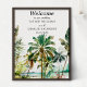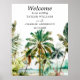 Cette belle et élégante enseigne d'accueil mariage aquarelle dispose d'une plage et de palmiers. Le texte combine écriture manuscrite et polices sans serif pour un look élégant et moderne. Il est parfait pour une plage d'été ou un mariage de destination tropicale.