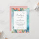 Cette invitation allie élégance moderne et beauté vibrante des tropiques, avec des fleurs luxuriantes et une verdure tropicale. Le design présente des fleurs exotiques dans des tons doux et bleus, complétées par des verts gras et feuillus qui évoquent un sentiment de paradis. Les fleurs et les feuillages sont aménagés dans un style contemporain et minimaliste, avec beaucoup d'espace blanc pour garder l'aspect frais et aéré. Les noms du couple sont affichés dans une police moderne et épurée, tandis que les détails mariages sont présentés dans une mise en page simple et facile à lire. Des touches d'or ou d'or rose peuvent être ajoutées pour un soupçon de sophistication. Cette invitation est parfaite pour les couples qui veulent apporter l'ambiance tropicale à leur mariage tout en conservant une esthétique chic et moderne, créant une invitation à la fois vivante et raffinée.