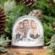 This tropical beach inspired personalized Christmas snow globe makes a great annual holiday keepsake, easily customized for a unique gift with the photo and text templates. Holiday watercolor sprigs of holly, pine, and starfish in two corners frame the photo, family name, and year date. The photo on the front and back can be changed separately.
