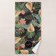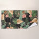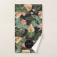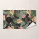 Un luxuriant feuille de palmiers tropicaux et des fleurs d'hibiscus roses de corail sur la serviette de bain noire. Pour une ambiance tropicale de jungle. Rafraîchissez votre décor de salle de bain avec cette touche moderne sur tropical.