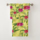 A Bright Yellow With Rose Colored Hibiscus Tropical Flowers Bathroom Towel Set