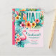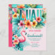 Fun Graduation thème Tropical Luau, piscine, plage, invitation à la fête à thème pour les filles aux couleurs tendance rose chaud et turquoise. Et regardez le Flamant rose !