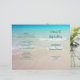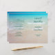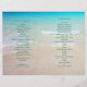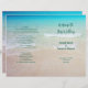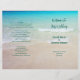 Tropical beach mariage plié programme de cérémonie. Eau océanique turquoise et sable de plage lisse est l'arrière - plan de ce programme personnalisé qui sera plié en deux. La police décontractée en gris foncé est facile à customiser sur quatre "pages". Dollars de sable et étoiles de mer décorent pour représenter le couple.