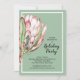 Une belle peinture à la main rose protéa floraison fleurie sur un arrière - plan vert menthe, cette invitation est un changement fabuleux par rapport aux invitations traditionnelles fêtes de Noël. Parfait pour une touche tropicale à votre célébration. CORRESPONDRE des articles dans notre magasin.