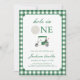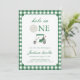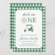 Préparez-vous à rivaliser avec cette invitation verte de premier anniversaire au golf "Trou en un" ! Avec des illustrations de golf aquarelle, un motif en vichy vert et une crête monographique, c’est un choix classique parfait pour le grand jour de votre bébé.