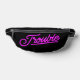 Qui dit que la commodité ne peut pas causer un peu de chaos ? Ce sac banane noir audacieux arbore le mot « Trouble » (Ennui) dans un lettrage néon rose vibrant - parfait pour contenir l'essentiel tout en gardant les mains (et l'attitude) libres.