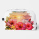 Ce magnifique sac de toilette présente un design tropical époustouflant qui capture l'essence paisible d'un coucher de soleil au bord de la mer. Avec des fleurs d'hibiscus vibrantes aux nuances de rose et de violet, associées à des feuilles bleu-vert douces, l'œuvre d'art crée un look apaisant et élégant. L'ajout de délicates coquillages et d'étoiles de mer renforce le thème côtier, tandis que le coucher de soleil sur l'océan lumineux à l'arrière-plan apporte de la chaleur et une atmosphère rêveuse à l'ensemble du design.