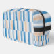 Sac de toilette élégant avec des rayures d'aquarelle bleu moderne et pêche. Personnalisez avec votre nom pour un voyage unique, salle de bain, ou organisateur de maquillage.