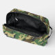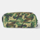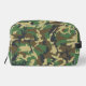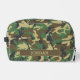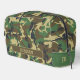 Military style toiletry bag featuring a khaki green and brown camouflage print pattern. There's a customisable text area on the front, where you can add a name or message. Plus, a monogram area on the right-hand side to add your own initials