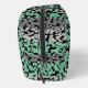 Ce motif numérique à rayures verticales pixelisé apporte une touche contemporaine à un sac de toilette de voyage classique. Le mélange personnalisable de vert menthe, de gris et de noir forme un design audacieux et visuellement attrayant qui attire l'attention. Avec l'interaction de rayures gris et vert menthe à deux tons sur fond noir, ce sac offre un contraste, ce qui en fait un excellent choix pour tout voyageur qui cherche à faire une impression mémorable.