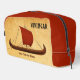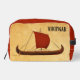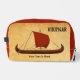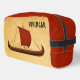Un Viking long navire avec une voile rouge vu en profil du côté droit. Il est superposé sur une image d'arrière - plan de papier ancien et le texte "VIKINGAR" (Vikings), apparaît également. Customisez en ajoutant votre propre texte supplémentaire.