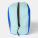 Ce sac cosmétique impressionnant présente l'image art numérique d'un petit garçon bleu magique adorable Narwhal. Le corps principal du Narwhal a une texture rugueuse et est bleu tandis que le ventre est gris bleu. Le Narwhal a un oeil noir avec une pupille blanche et une corne dorée brillante sur le visage. Il a aussi la queue délicate et les palmes.