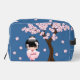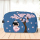 Trousse De Toilette Blanc Kimono Kokeshi Doll Cute Geisha Girl Blue
