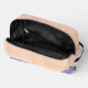 Cette conception de sacs de toilettes combine à merveille le rose fuchsia, le violet pastel, la lavande et le motif rétro chic rayé de couleur violet. La variété de cette combinaison de couleurs crée un effet dynamique et rythmique. La motif est à la fois ornée et élégante, avec une touche de fantaisie et d'esprit hipster. Il y a également de la place pour customiser ou personnaliser avec un monogramme ou une initiale de votre choix. Que ce soit à la recherche d'un style chic et moderne ou d'une ambiance vintage et rétro, ce motif conviendra à votre goût et à votre personnalité.