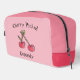 Sac de toilettes personnalisable cueilli en cerise mignonne créé à l'aide de cerises d'aquarelle dessinées à la main sur un amusant arrière - plan de bloc de couleur. Visitez mon magasin pour plus de produits personnalisés sélectionnés avec des cerises. Art original de Leslie Larson.
