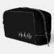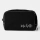 Elégant sac cosmétique personnalisé noir, avec un design de typographie de script simple. Un article classique chic pour garder vos cosmétiques ensemble.
