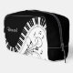 Nom sur le clavier noir et blanc avec un flair incurvé. Des notes musicales rajoutées ajoutent un look festif qui s'harmonise avec le design mariage à thème piano musique. C'est un sac de toilette unique qui serait bon pour les groomsmen et les demoiselles d'honneur. Bien qu'il ya des sacs maquillage qui ont ce thème de la musique design pour les filles dans votre mariage.