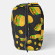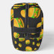 Sac motif cool et amusant pour hamburger. Accessoires de mode pour tous. motif de burger cool et amusant sur arrière - plan gris foncé. Illustration vectorielle délicieuse à base de pain de sésame grillé avec pâté de viande, salade, tomates et fromage.