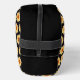 Sac de toilette en kit dopp zippé avec photo d'une fleur Dahlia jaune imprimée dans un motif extensible sur un arrière - plan noir, avec panneaux de dessus et de côtés solides, noirs. Un design floral et amusant ! Sacoche accessoire parfaite pour vos articles de toilette pour le voyage sur le pouce!