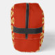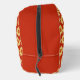 Sac de toilette en kit dopp zippé avec photo d'une fleur Dahlia jaune imprimé dans un motif extensible sur un arrière - plan rouge clair, avec panneaux de dessus massif, rouge et rouge. Un design floral et amusant ! Sacoche accessoire parfaite pour vos articles de toilette pour le voyage sur le pouce!