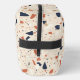 Un somptueux sac de toilette à effet terrazzo dans des couleurs bleu marine et douce neutre rose et crème.