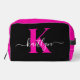 Trousse De Toilette Élégant Noir Hot Rose Script Monogramme