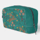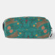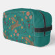 A whimsical pattern featuring leaping brown rabbits surrounded by yellow, pink, and red flowers, green leaves, and dotted accents on a teal background.