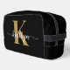 Ce sac de toilette noir simple et élégant, avec votre prénom dans une police de caractères en écriture tendance en blanc et votre première initiale dans une police casquette moderne en or, est parfait pour vous. C'est design, tendance et pourtant très classique. Il sera fabuleux pour l'école, la salle de sport, le travail, votre voiture - fera garder votre maquillage ou des articles de toilette à un endroit lorsque vous êtes loin de chez vous.