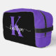 Ce sac de toilette noir simple et élégant, avec votre prénom dans une police de caractères en écriture tendance en blanc, et votre première initiale en police casquette moderne en violet, est parfait pour vous. C'est design, tendance et pourtant très classique. Il sera fabuleux pour l'école, la salle de sport, le travail, votre voiture - fera garder votre maquillage ou des articles de toilette à un endroit lorsque vous êtes loin de chez vous.