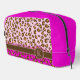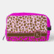 Sac de trousse de motif graphique pour animaux léopard monogrammé avec bande de nom brun avec votre propre monogramme. Allez-y avec ce poster de animal rose pâle, rose chaud et marron. Customisez avec votre propre lettre de monogramme actuellement K. © Motif conçu par Sarah Trett www.sarahtrett.com pour www.mylittleeden.com sur zazzle.