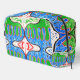 Turn heads, even when you're unpacking. This zippered travel pouch showcases the Organic Geometry print—an abstract explosion of color featuring green, blue, red, and white in a perfectly mirrored design. Whether you're storing cosmetics, tech accessories, or travel essentials, this pouch is a statement piece that adds art to your everyday routine.