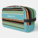 Cette conception de sacs de toilette est dotée d'un étonnant motif d'art à rayures horizontales couleur ivoire, bleu turquoise, vert sauge, brun foncé et brun moyen, et rayures horizontales couleur ivoire sur un arrière - plan noir. La variété de cette combinaison de couleurs crée un effet dynamique et rythmique. La motif est à la fois ornée et élégante, avec une touche de fantaisie et d'esprit hipster. Il y a également de la place pour customiser ou personnaliser avec un monogramme ou une initiale de votre choix. Que ce soit à la recherche d'un style chic et moderne ou d'une ambiance vintage et rétro, ce motif conviendra à votre goût et à votre personnalité.