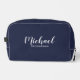 Script moderne Groomsmen Cadeau personnalisé avec nom de marionnettiste personnalisé en blanc style de police script moderne avec titre et date mariage dans style de police sans serif moderne sur arrière - plan bleu marine. Parfait pour la demoiselle d'honneur, fille de fleurs, mère de la mariée, meilleur homme et plus.