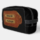 Personnalisez l'étiquette d'identification en faux cuir vintage de ce sac de toilette photographique avec son nom et son occupation ou esprit. Un cadeau idéal pour la retraite, la promotion, les anniversaires ou la Fête des pères, que ce soit pour un Roadtripper, Wanderer, Retiree, World Traveller ou Best Papa, Homme ou Groomsmen. Il a un look classique en noir et son aspect réaliste, riche photographique en cuir patiné brun et vieilles inserts en papier tan vieilli. Tous les textes de chaque côté sont personnalisables individuellement pour le cadeau personnalisé parfait.