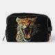 Fierce Puissant Leopard Roaring portrait d'attaque gros avec de longs crocs. Illustration vectorielle originale isolée sur blanc Copyright BluedarkArt TheChameleonArt.