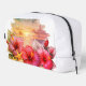 This beautiful toiletry bag features a stunning tropical design that captures the peaceful essence of a seaside sunset. With vibrant hibiscus flowers in shades of pink and purple, paired with soft blue-green leaves, the artwork creates a calming and elegant look. The addition of delicate seashells and starfish enhances the coastal theme, while the glowing ocean sunset in the background brings warmth and a dreamy atmosphere to the overall design.