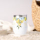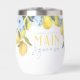Trouvé son principal Squeeze Personnalisé citron & Fleur Vin Thermal Tumbler pour la mariée à être! Doté de belles fleurs d'ardoise bleu azur et de citrons jaunes sucrés.