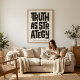 Truth As Strategy Poster – Typography Wall Print. A bold typographic statement about clarity and conviction. “Truth as Strategy” isn’t decoration — it’s a mindset. Strong, hand-shaped letterforms add a raw, human edge while keeping the composition clean and focused. The reduced black and neutral tones create a timeless, understated look that integrates effortlessly into modern interiors. Designed in a 3:4 format for balanced proportions. Available sizes: 12×16, 15×20, 18×24, 24×32, 30×40 inches. Works as a focal point or within a gallery wall — ideal for living rooms, offices, or creative spaces. Colors may vary slightly due to screen settings. Frame not included.