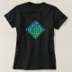 Un t-shirt d'un noeud celtique bleu-vert contre un arrière - plan noir.