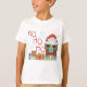Tshirts père Noël Ho Ho Ho, tongs, magnets, sacs fourre-tout, autocollants, porte - clés et autres vêtements de vacances et cadeaux avec le Père Noël, flocons de neige, beaucoup de cadeaux de Noël brillants, et le texte rouge qui dit 'Ho Ho !".